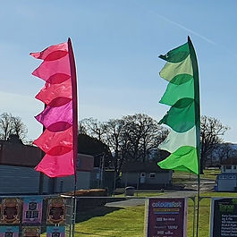 These flags are 4m tall and 1.4m wide. The go on a 6m tall self assembly carbon pole with ground spike.